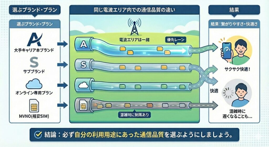 選ぶブランドや料金プランによって、その中身の「通信品質」は異なります