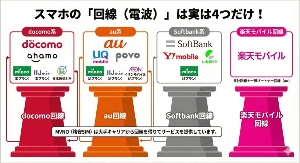 - 【2026年最新】携帯会社の繋がりやすさ比較!ドコモ・au・SB・楽天の【各回線の違い】を徹底解剖