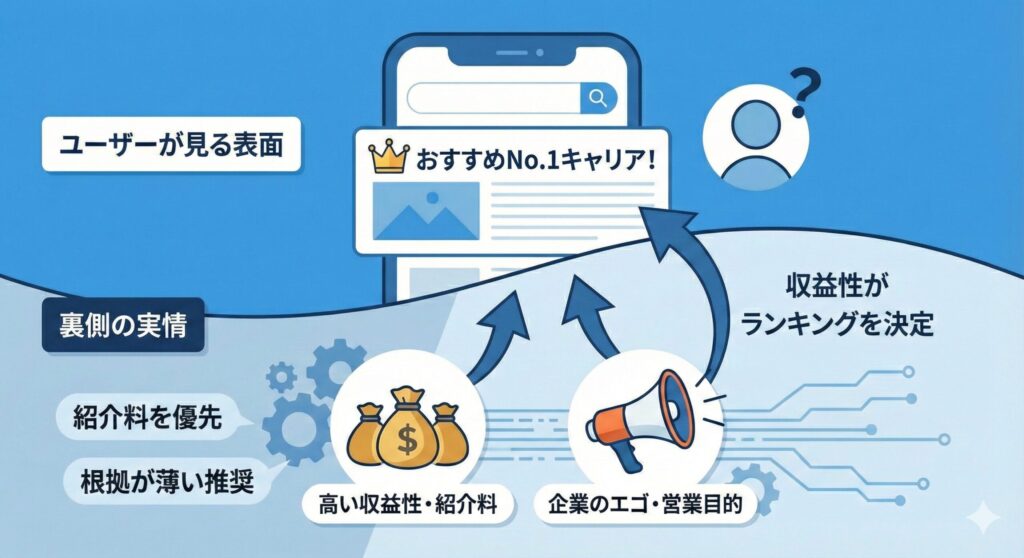「このキャリアがおすすめ!」と断定されていても、その根拠が薄かったり