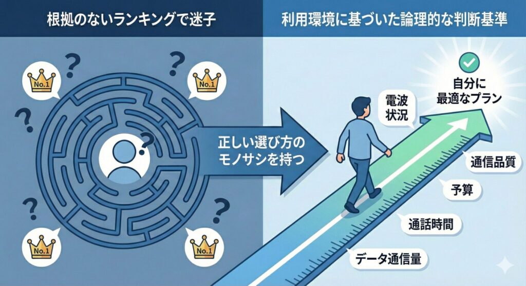 その迷いの原因は、キャリア側や企業サイトの都合で語られた「表面的な安さ」だけが、判断材料になっていがちな点にあります。